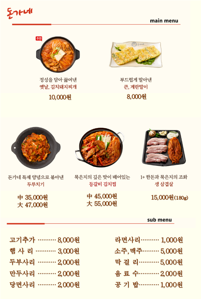 국내산 최고급 등갈비와 1년 이상 숙성된 묵은지,